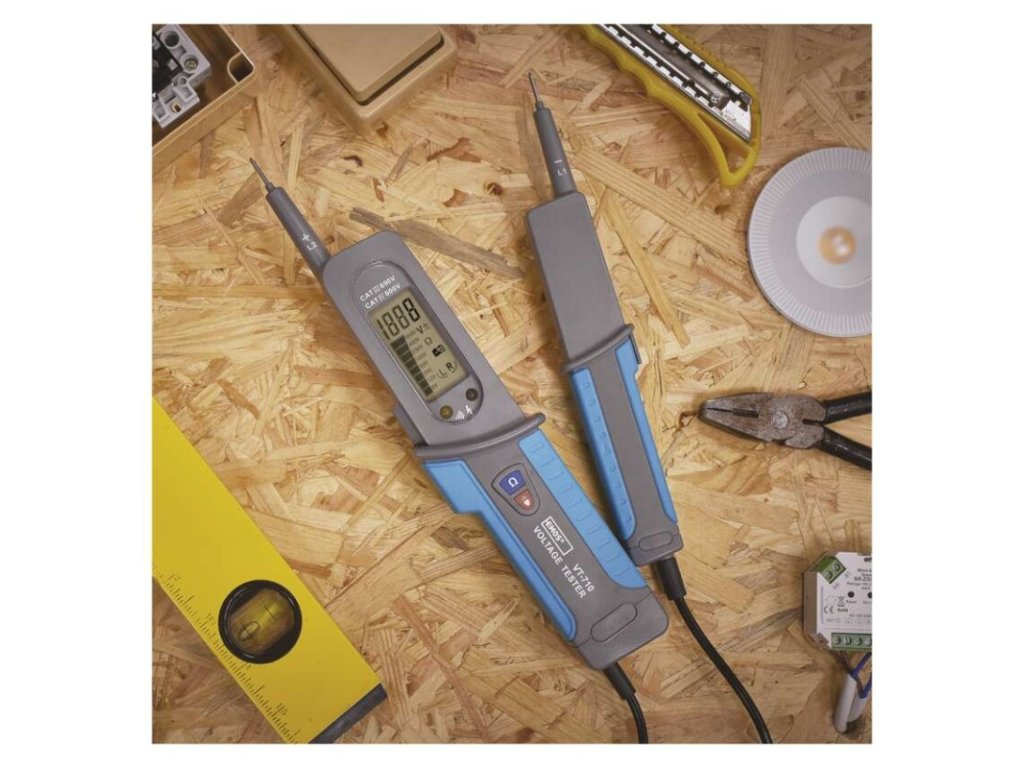 bezkontaktné meranie: nie|frekvenčný rozsah: 45–65 Hz|jednosmerné a striedavé napätie: 6 V, 12 V, 24 V, 50 V, 120 V, 230 V, 400 V, 690 V|jednosmerné napätie: 6–690 V|meranie spojitosti obvodov: áno|napájanie: 2× 1,5 V AAA (súčasťou balenia)|nastavenie dvoch citlivostí: nie|predajný obal: 1 ks, blister|signalizácia: optická + akustická|striedavé napätie: 6–690 V|určenie fázy: áno|určenie polarity: ánoDodatočné parametre