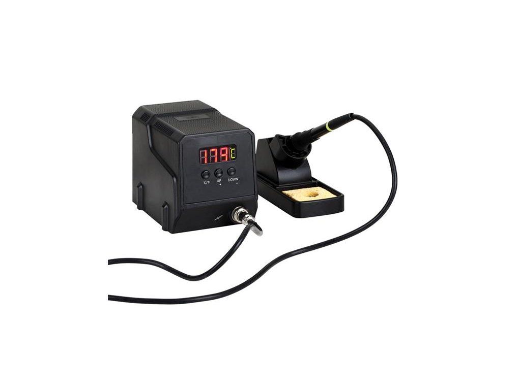 Spájkovacia stanica ZD-8936Spájkovacia stanica (mikropájka) ZD-8936 bola navrhnutá pre bezolovnaté spájkovanie v rozsahu teplôt 50 až 480 ° C. Prístroj je určený pre použitie v oblasti elektronického výskumu, škôl a výroby, najmä pri opravách a spájkovaní elektronických prístrojov a telekomunikačných zariadení. Je riadená automaticky pomocou mikroprocesora. Sedemsegmentový trojmiestny LED displej zobrazuje skutočnú teplotu aj prednastavenú teplotu hrotu. Hrot s vykurovacím telieskom na napätie 24V a čidlom skutočnej teploty, má príkon 60W (pri rozohrievaní sa môže automaticky zvýšiť až na 120W). Zahriatie z izbovej teploty na 350 °C preto trvá len asi 30 sekúnd. Digitálna elektronika a čidlo v spätnej väzbe zaisťujú takmer konštantne nastavenú teplotu, bez ohľadu na zvýšený odber tepla letovaním rozmernejších súčiastok. Spájkovacia stanica ZD-8936 s širokým výberom spájkovacích hrotov radu N9-16 až N9-56, môže byť použitá kdekoľvek v odvetví elektroniky. Rukoväť spájkovačky potiahnutá gumou pre ochranu pred teplom pri dlhodobej práci.