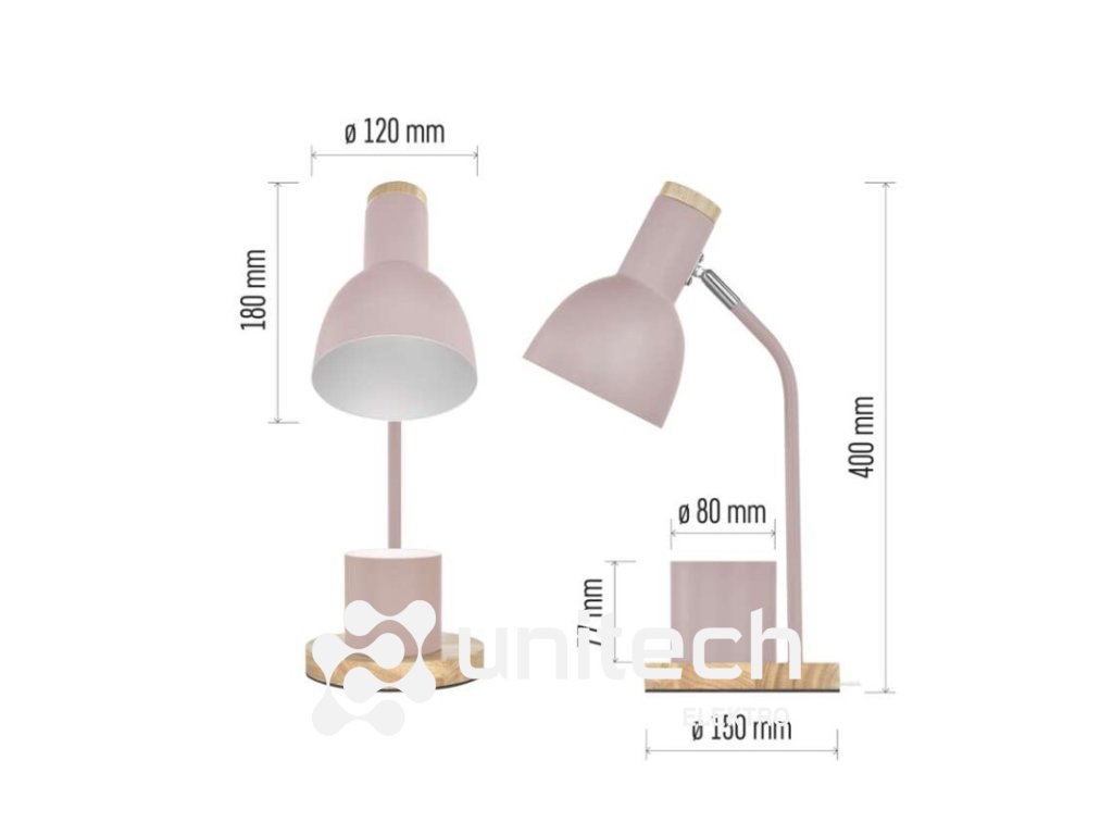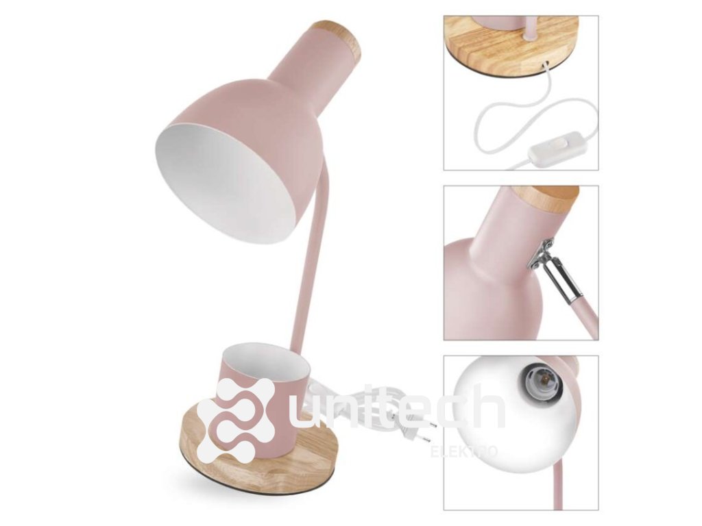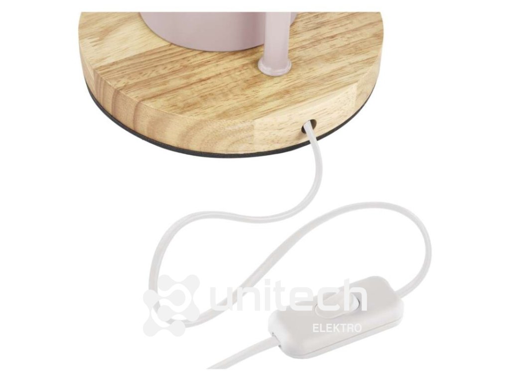 činiteľ starnutia: –|čip LED: –|dĺžka prívodného kábla: 1,5 m|energetická trieda: –|energetická trieda (od 1.9.2021): –|farba: ružová|farba svetla: –|index podania farieb (CRI): –|integrovaná nabíjacia batéria: nie|krytie: IP20|materiál: kov + drevo|max. výkon: 25 W|napájacie trafo: 220–230 V|napájací zdroj súčasťou balenia: –|napätie: 220–230 V AC|obsah ortuti: –|pätica (uchytenie žiarovky): E27|počet LED: 0|počet spínacích cyklov: 10 000|predajný obal: 1 ks, krabica|príkon: 25 W|rozmer: 150 × 150 × 400 mm|rýchlosť nábehu na 100 %: –|stmievanie: nie|svetelný tok: –|teplota chromatičnosti: –|typ napájania: sieť|účinník: –|USB port: nie|životnosť: –Dodatočné parametre