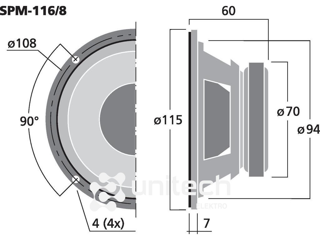 Stredotónový reproduktor SPM-116/8, 8 Ohm, PLU RE207