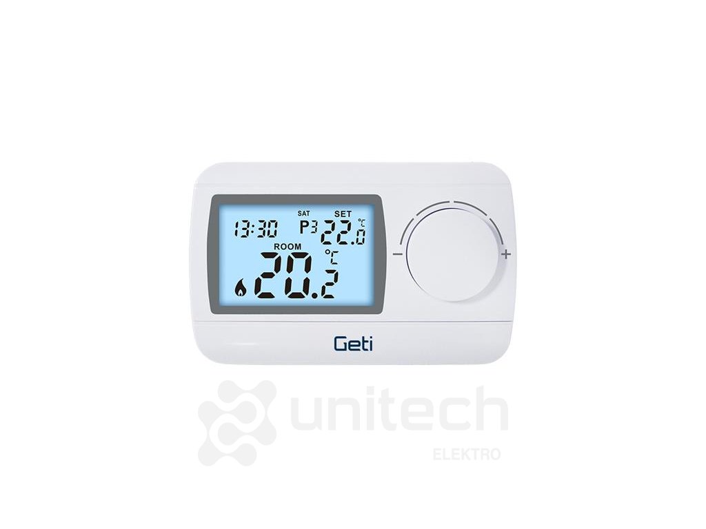 Termostat GETI GRT04 drôtový programovatelný 7denný