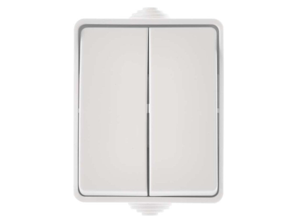 design: neuvádza sa|farba: biela|krytie: IP54|napätie: 250 V~/10 AX|predajný obal: 1 ks, PE sáčok|prevedenie: 2 tlač. klasický vodeodolný|produkt: spínač sériový č. 5 (lustrový)|spôsob montáže: na stenuDodatočné parametre