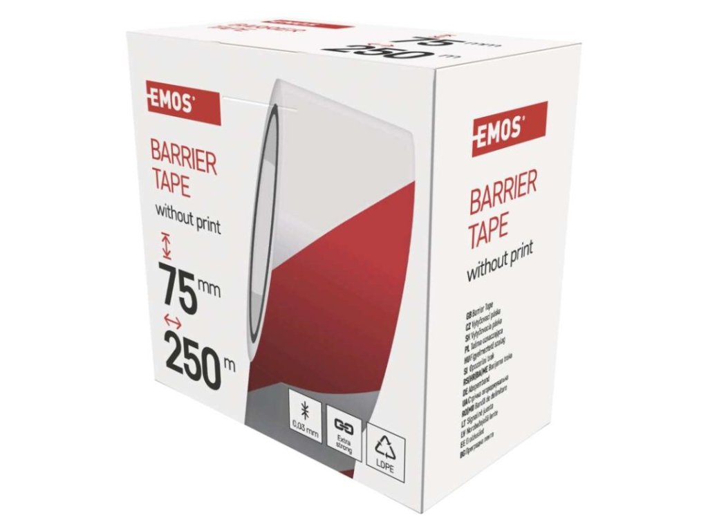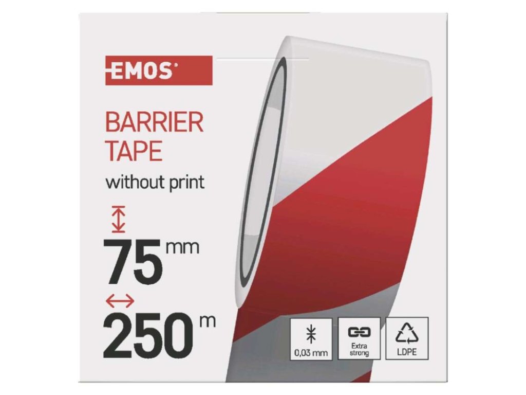 dĺžka návinu: 250 m|elektrická pevnosť minimálne: neuvádza sa|elektrická pevnosť po vlhku minimálne: neuvádza sa|farba: červená/biela|hrúbka pásky: 0,03 mm|integrovaná textilná sieťka: nie|materiál lepidla: bez lepidla|odolné UV: áno|odporúčaná skladovacia teplota: 5–30 °C|pevnosť v ťahu: neuvádza sa|potlač: bez potlače|predajný obal: 1 ks, papierový odvinovač|predĺženie minimálne: neuvádza sa|predpokladané použitie: ohraničenie výkopov, k vytýčeniu stavebných priestorov, športových tratí, rôznych nebezpečných miest|priľnavosť k oceli minimálne: neuvádza sa|priľnavosť k podkladu: neuvádza sa|rozmer: 140 × 75 mm|rozsah inštalačných teplôt: 5–30 °C|samozhášavé: nie|šírka pásky: 75 mm|skúška plameňom: neuvádza sa|spĺňa smernicu REACH: neuvádza sa|spĺňa smernicu ROHS: neuvádza sa|typ pásky: výstražná páska z LDPE (nízkohustotný polyethylen)|vodotesný spoj: nie|vyhovuje norme: neuvádza sa|vytvára tlakotesný spoj: nieDodatočné parametre