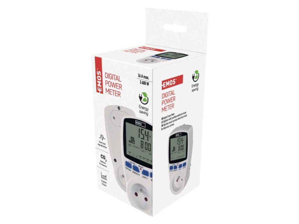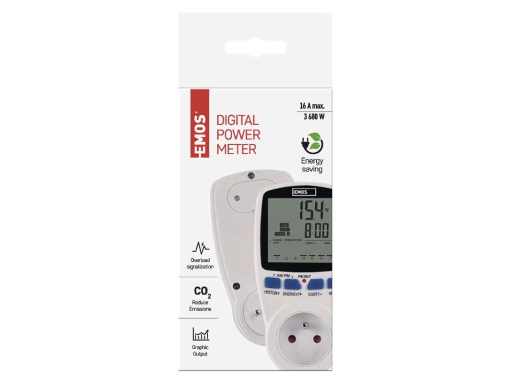 bezdrôtové: nie|detské clonky: áno|LED indikácia preťaženia: áno|max. záťaž: 3 680 W|max. zaznamenaný čas: 9 999 hodín|napätie/prúd: 230 V~/16 A max.|predajný obal: 1 ks, krabica|produkt: merač spotreby elektrickej energie|rozmer: 148 × 75 × 75 mm|rozsah merania: 2 W–3680 W|rozsah spotreby elektrickej energie: 0 kWh–9 999 kWh|záložný akumulátor: 2× 1.5 V (LR44/AG13)Dodatočné parametre