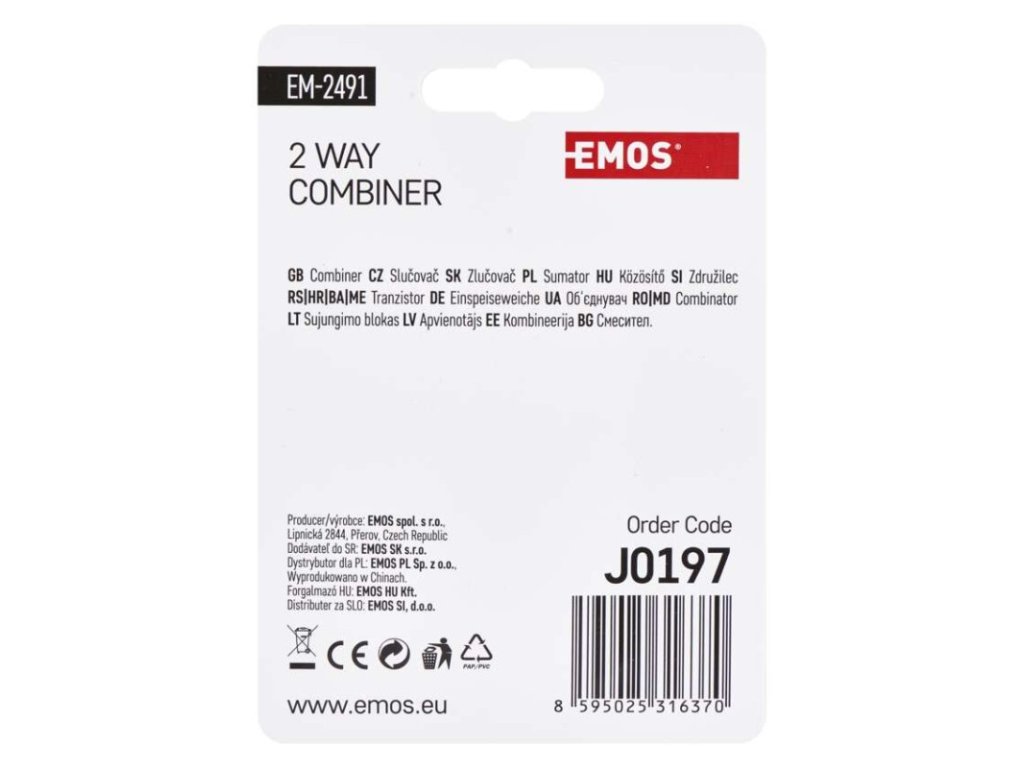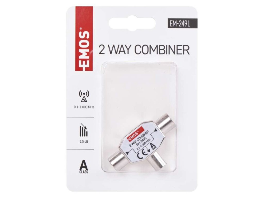 frekvenčný rozsah: 0,1–1 000 MHz|krytie: IP20|materiál tela: zinkový odliatok|počet vstupov: 2|počet výstupov: 1|použiteľný pre zlúčenie satelitného signálu: nie|použitie: TV + R|pracovná teplota: -10–+65 °C|predajný obal: 1 ks, PVC sáčok|prevedenie: univerzálny feritový|priechodná pre jednosmerné napätie (power pass): áno|priechodný útlm: 3,5 dB|produkt: zlučovač TV+R|rozmer: 17 × 32 × 23 mm|tlmenie odrazu na vstupe: neuvádza sa|typ konektorov: IEC|zvlnenie v pásme: neuvádza saDodatočné parametre